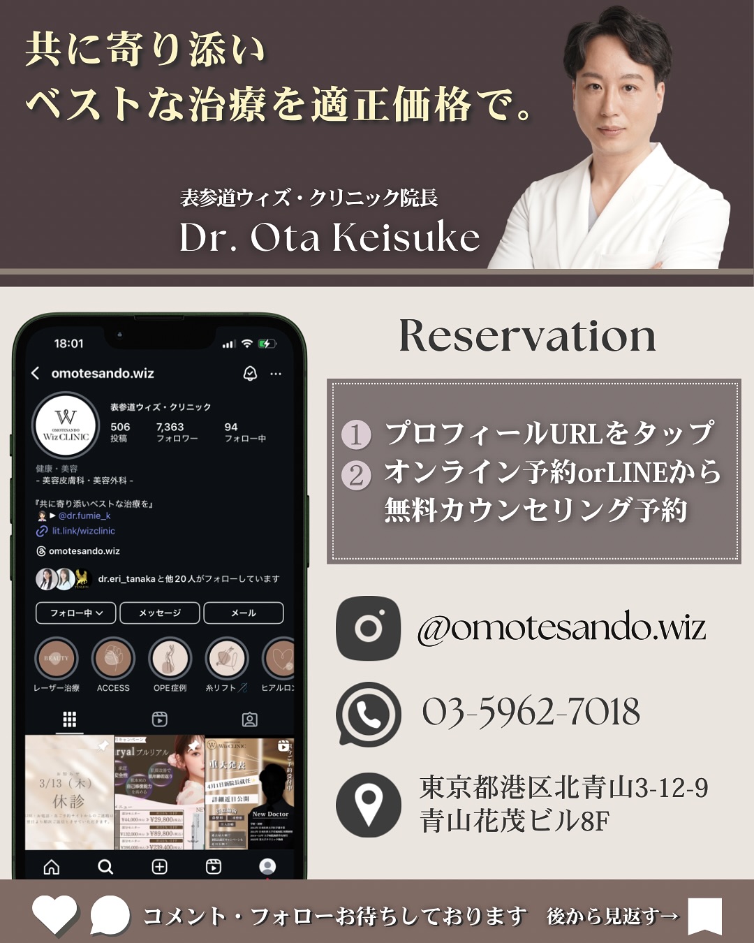 ✔︎ @dr.ota_wizclinic / @omotesando.wiz をフォロー
